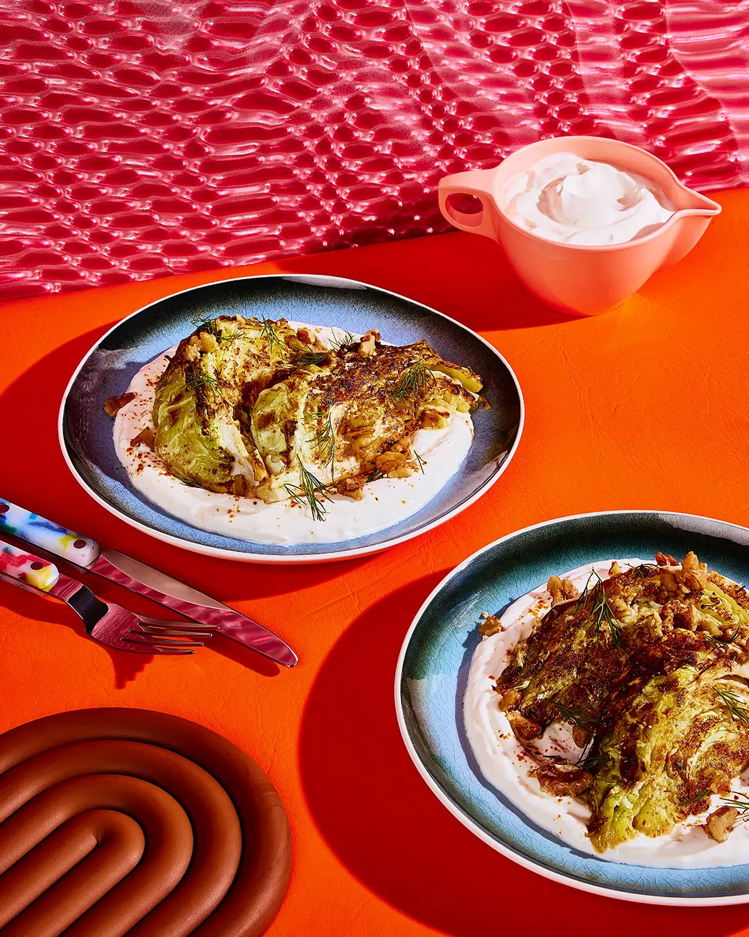 Quartiers de chou rôtis au beurre aux anchois et yogourt citronné