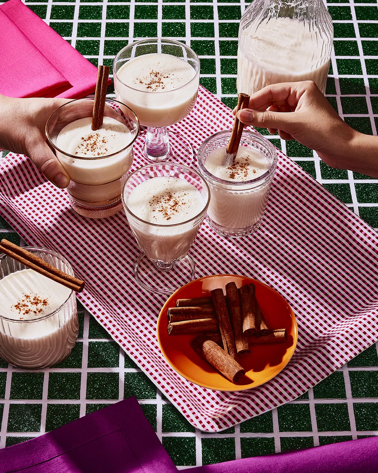- Servir bien frais, avec des glaçons si désiré. Saupoudrer de cannelle et décorer d’un bâton de cannelle dans chaque verre.