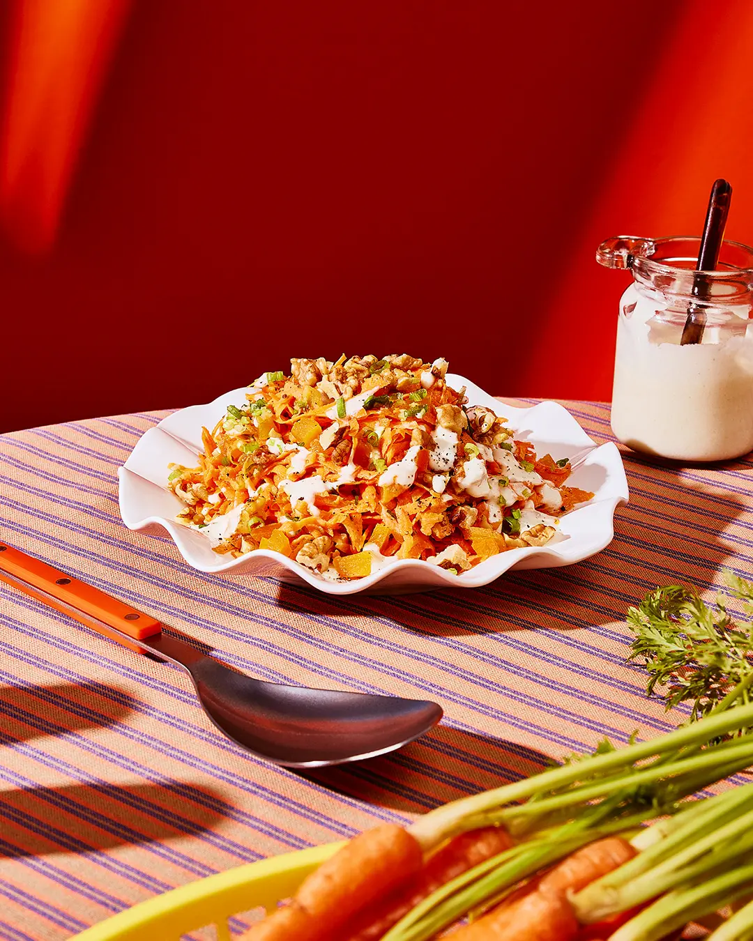 La vinaigrette fait toute la différence. Au lieu d’un simple citron sur les carottes, j’y ajoute de la crème sure, de la moutarde de Dijon, du miel et de l’huile d’olive. Le résultat est sucré avec une légère pointe piquante.
