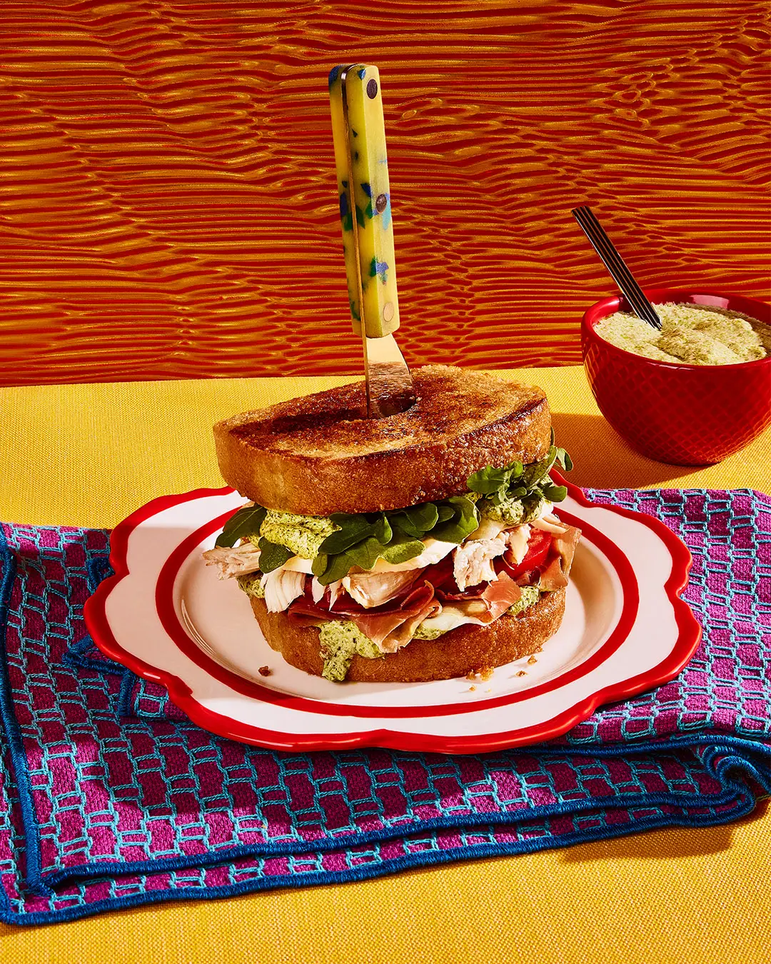 Coupez les sandwichs en diagonale pour les manger plus facilement et les présenter mieux dans l’assiette.